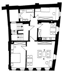 - Das Grundstück wurde 100-prozentig überbaut, da der vorhandene Hof von ca. nur 3 m Breite kaum natürlich belichtet wurde. So konnte zusätzliche Wohnfläche und eine attraktive Dachterrasse gewonnen werden.