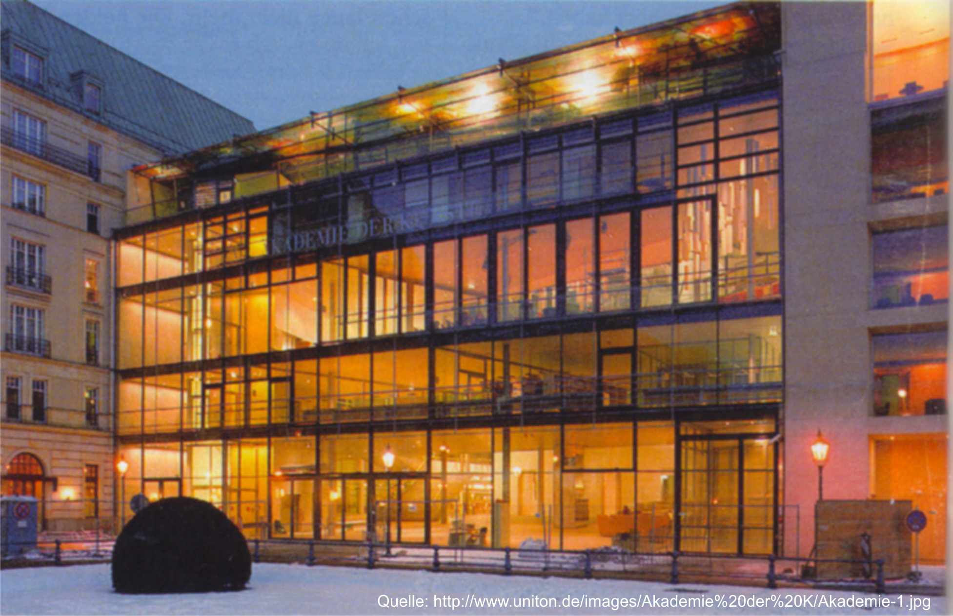 Sitz der Akademie der Künste mit Ausstellungssälen, Sitzungs-, Veranstaltungs- und Clubräumen, Archiv mit Magazin, Büros, Cafeteria