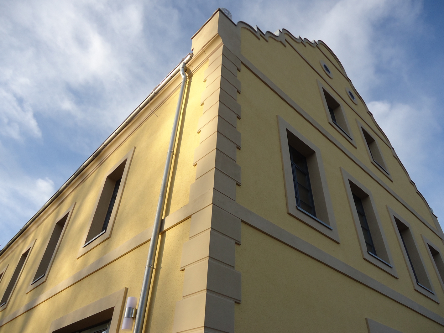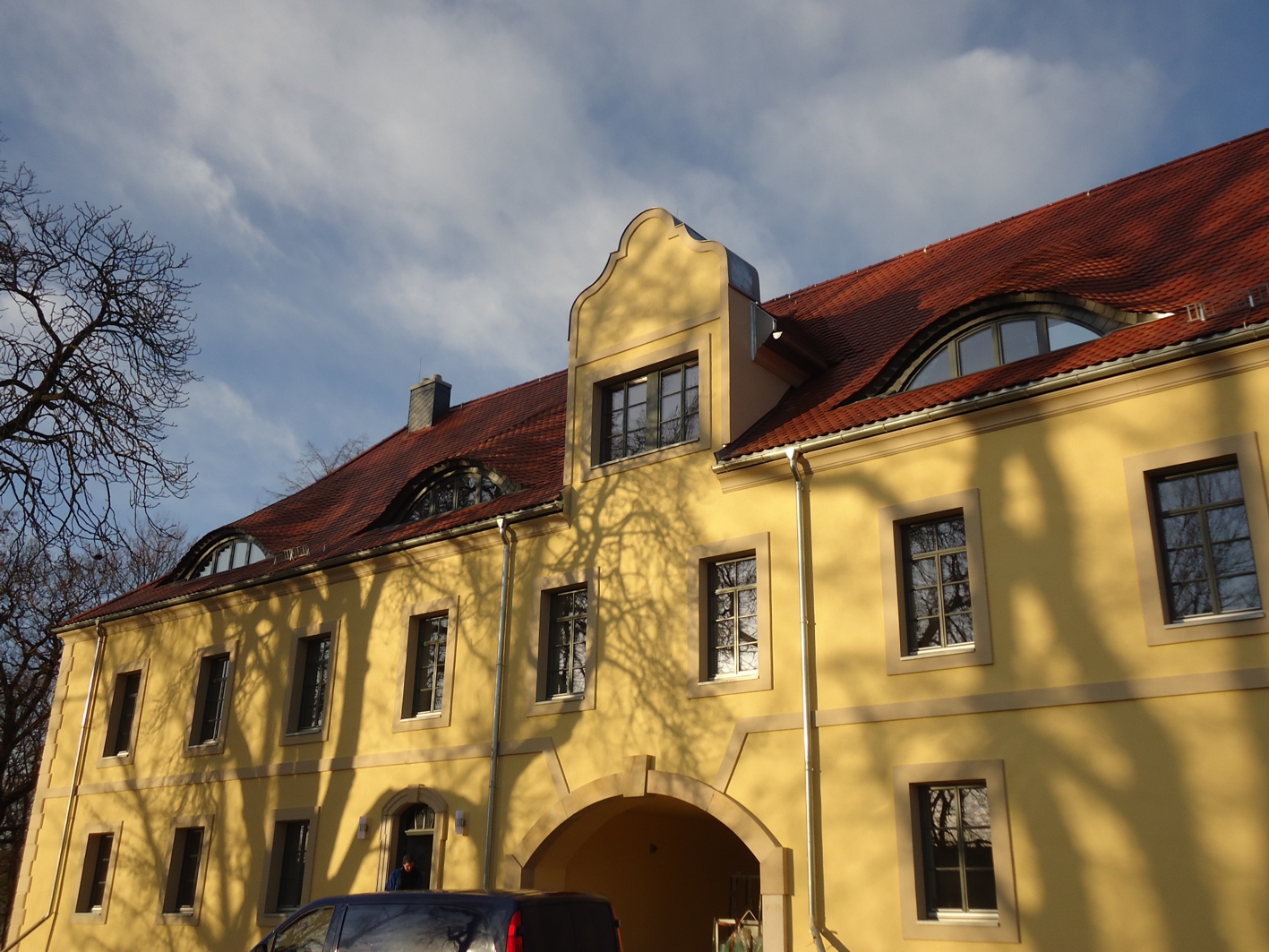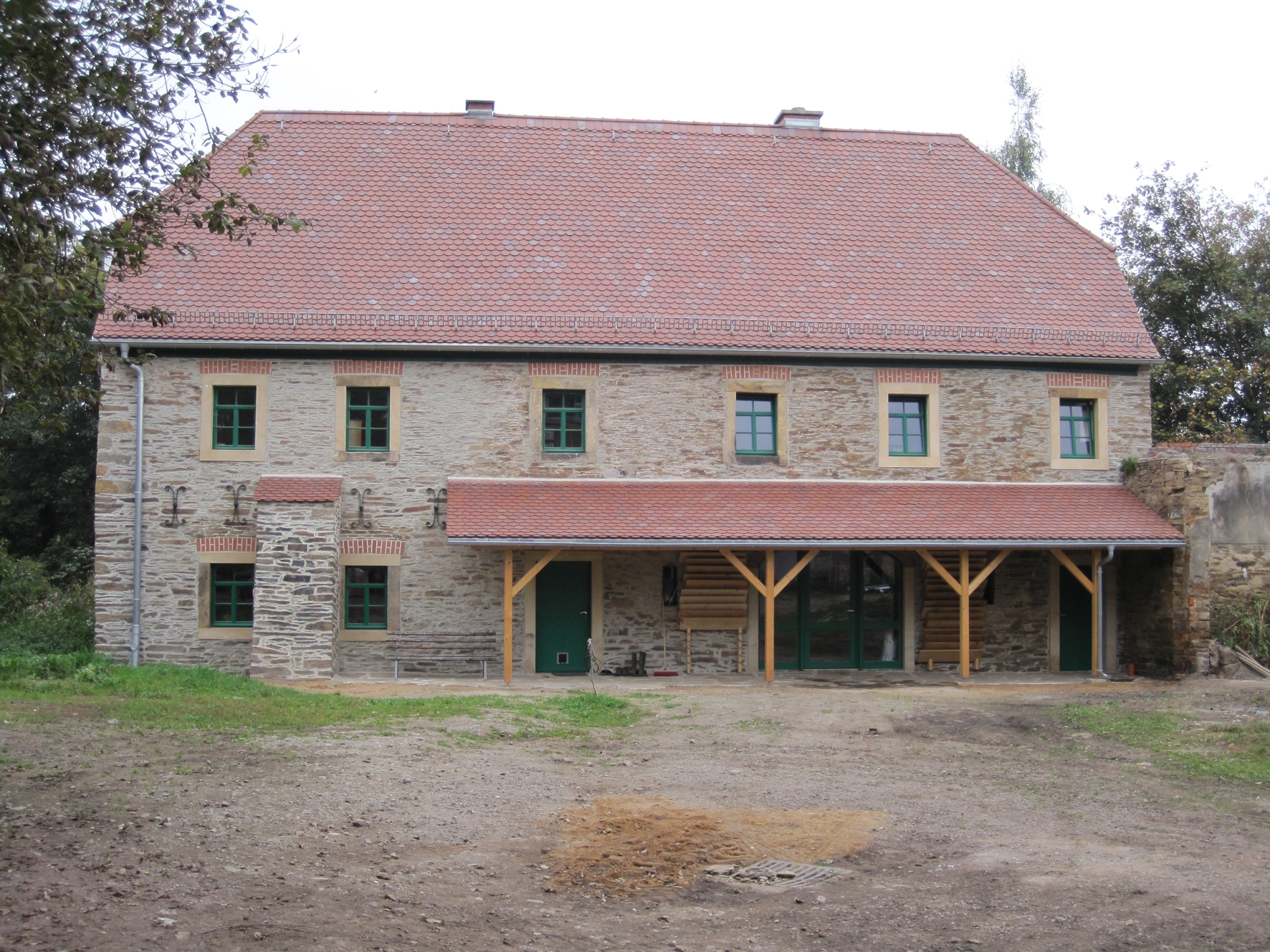 Wesentlicher Teil des Gesamtkonzeptes bildet die Einrichtung von Beherbergungskapazitäten. Dazu wird das bestehende Wohnhaus um den historischen Dachstahl ergänzt und die alten Kubaturen, Fenster, Türen sowie die Einfahrt wiederhergestellt.