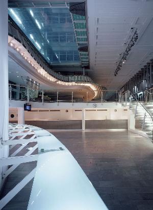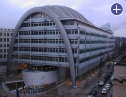 - Über zwei an der Ostfassde liegende gebäudehohe Atrien werden die nicht an den Fassaden liegenden Büros natürlich belichtet und belüftet.
